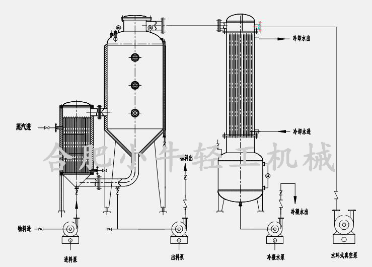 單效外循環(huán)蒸發(fā)器(單效濃縮器)是自然循環(huán)蒸發(fā)濃縮設(shè)備的一效形式,設(shè)備在生物制藥、保健食品、調(diào)味品、乳品飲料、日用化工、香精香料、環(huán)保工程等眾多領(lǐng)域具有廣泛應(yīng)用??蓪χ兴幪崛∫?、發(fā)酵液、酶解液、蛋白飲料、化工溶液等多種料液在真空狀態(tài)下快速蒸發(fā)濃縮,有效提高料液濃度,或用于酒精等有機(jī)溶劑回收。